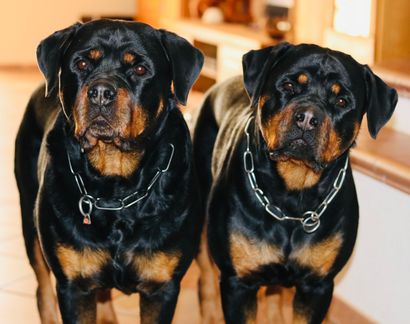 Sie sind Kraft pur.Rottweiler sind beeindruckende Erscheinungen , die ihren Haltern in der Regel von Herzen zugetan sind.Sie kuscheln,albern und spielen genau so gerne, wie die meisten anderen Hunderassen und sind obendrein äußerst anhänglich.