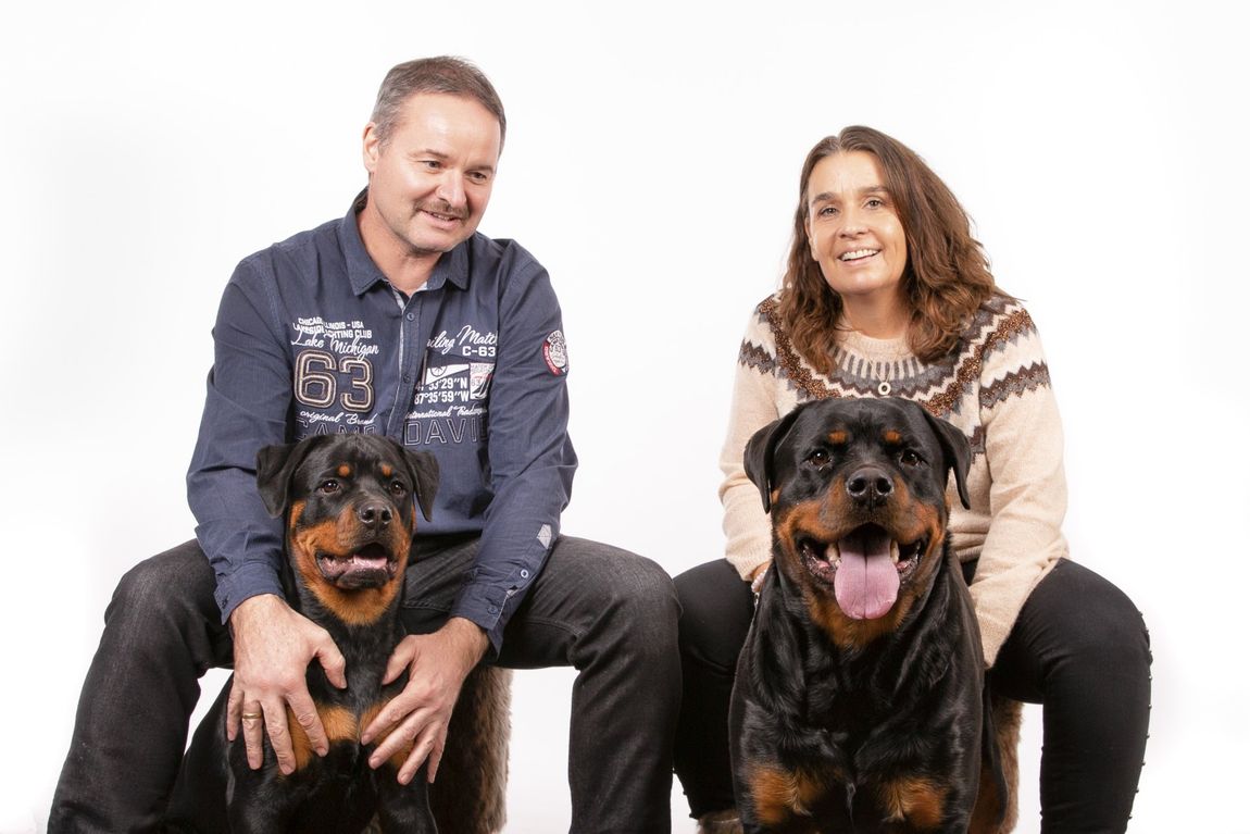 Die Rottweilerwelpen werden im Haus aufgezogen und von unserer Familie versorgt, dazu gehört auch der Kontakt mit Kindern und anderen Tieren und Alltagssituationen.